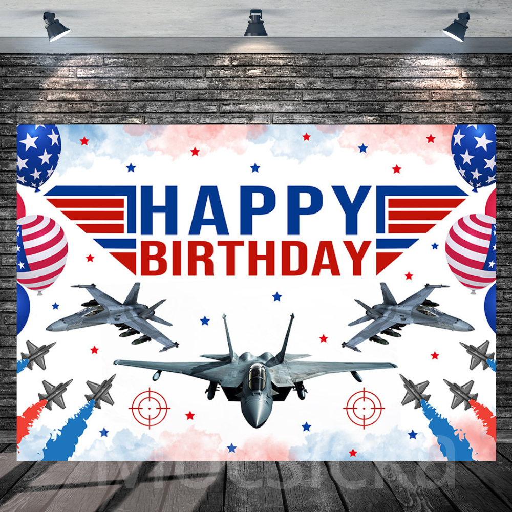 Mocsicka American Air Force and Fighter Jet for Birthday Backdrop