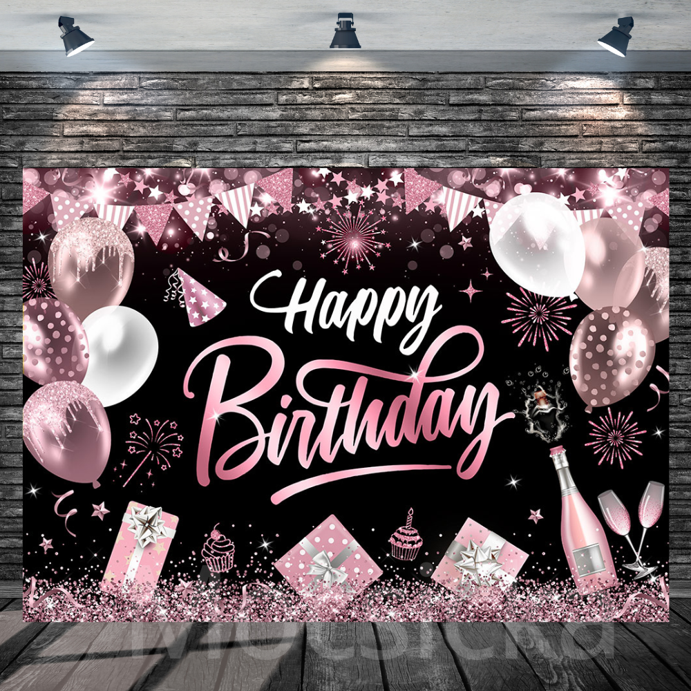 Mocsicka Pink - Themed Glittery Happy Birthday Backdrop