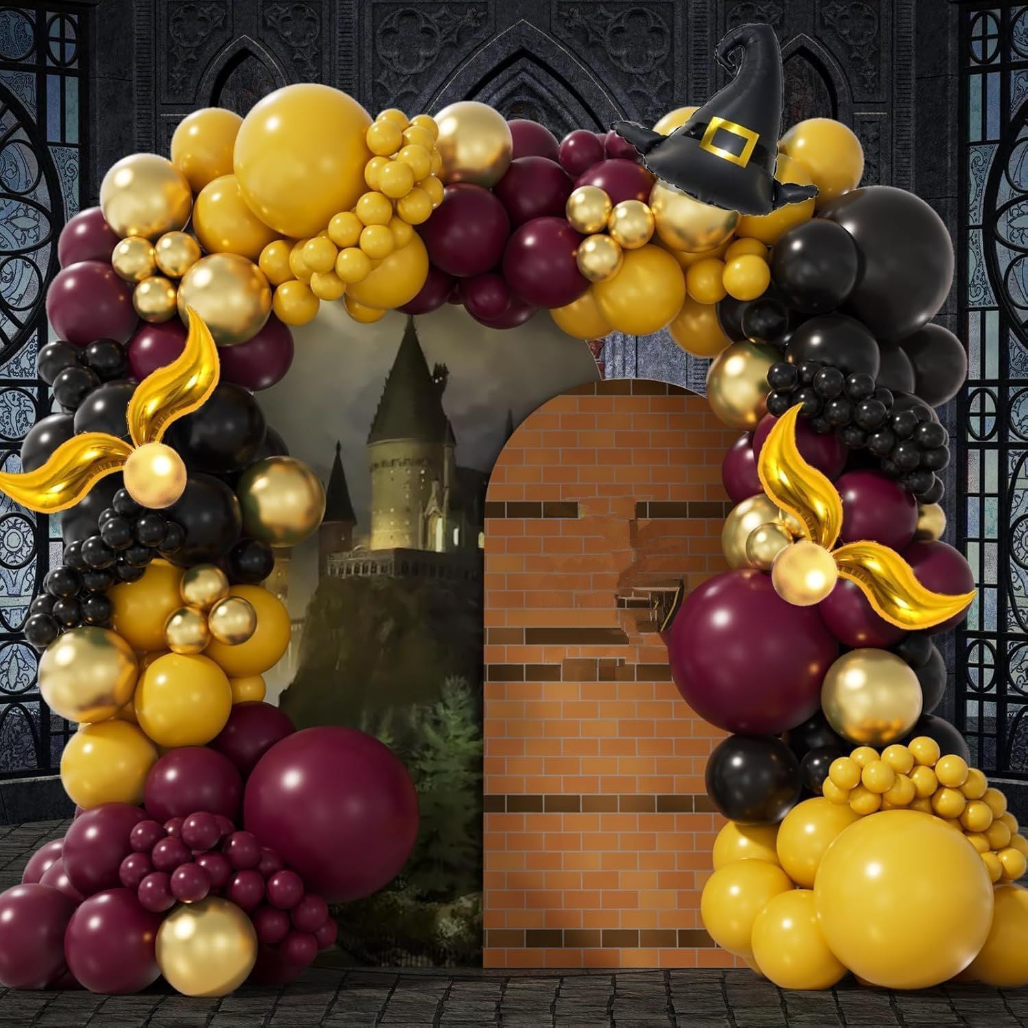 Mocsicka Burgundy Gold Wizard Hat Magic Birthday Balloon Kit