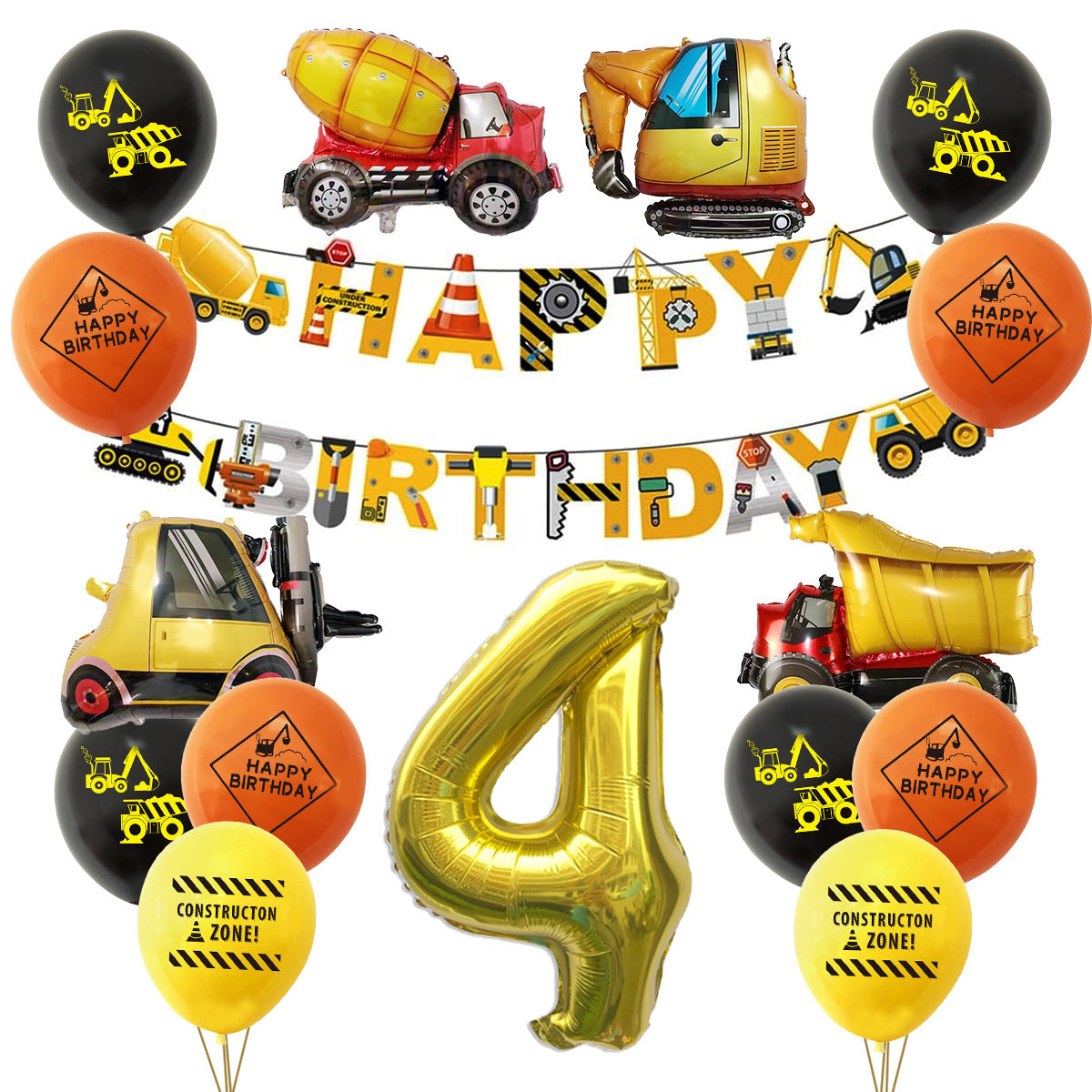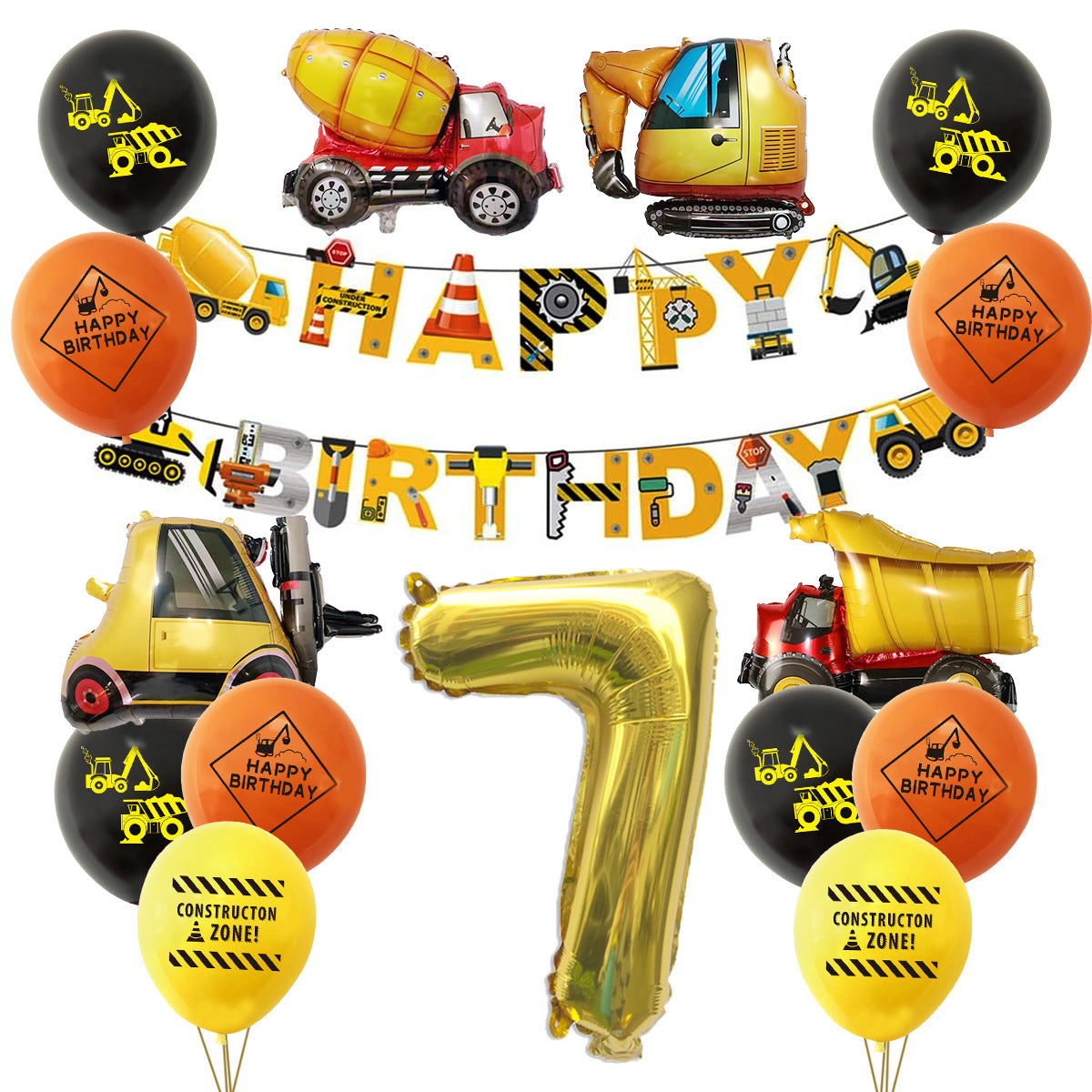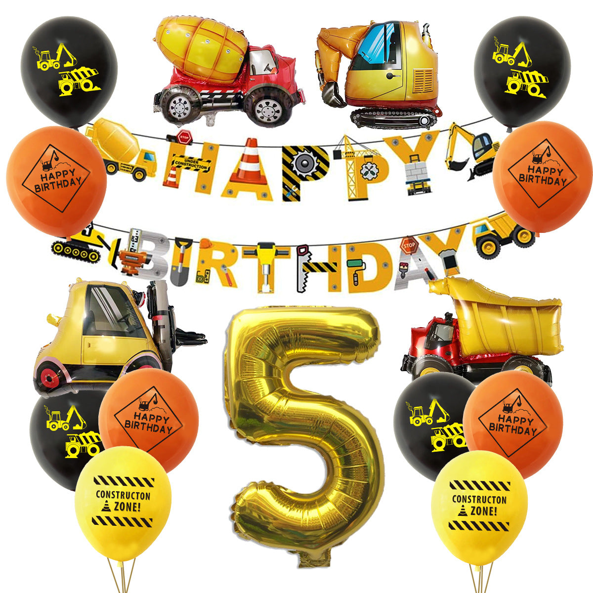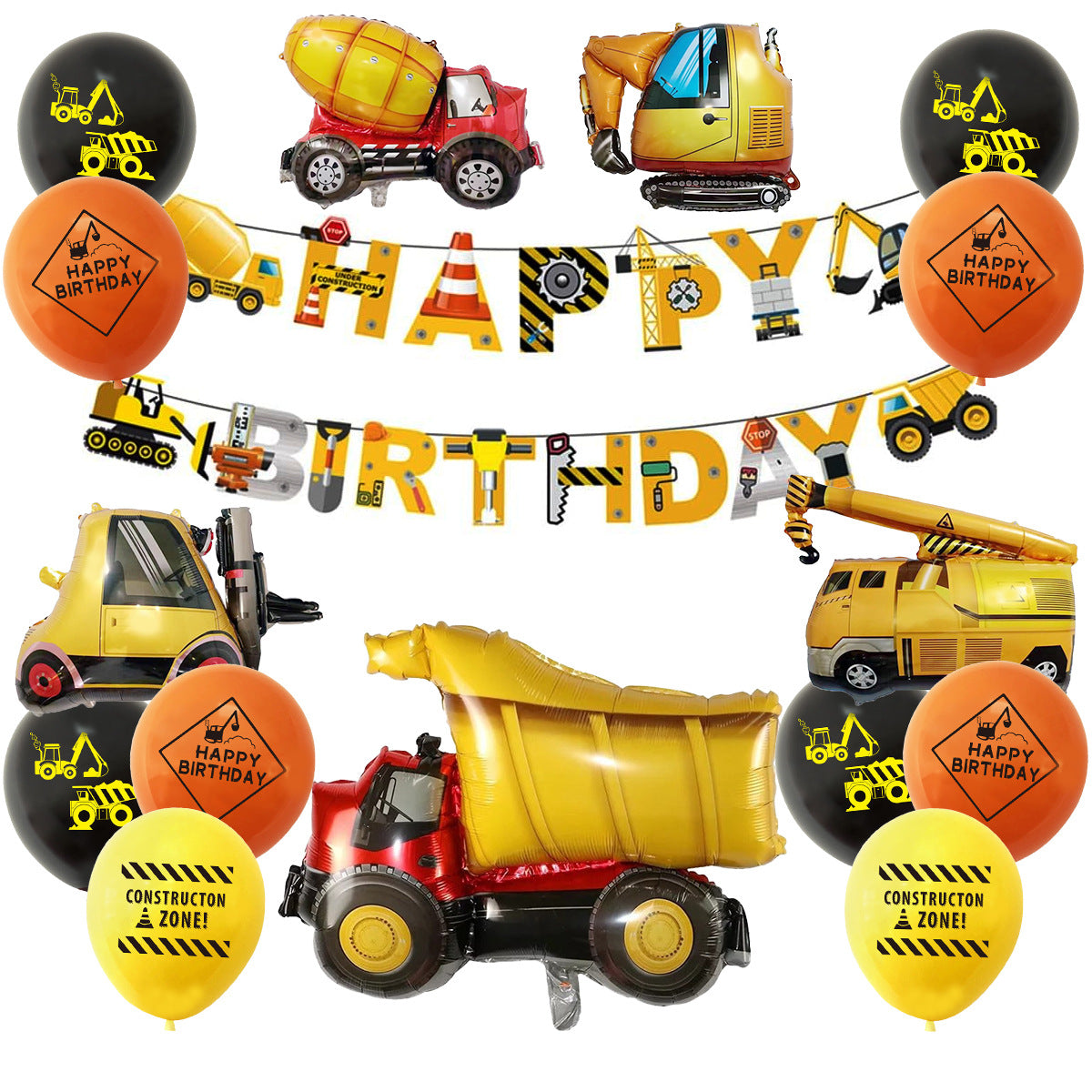 Mocsicka Construction Vehicle Excavator Foil Birthday Balloon Kit