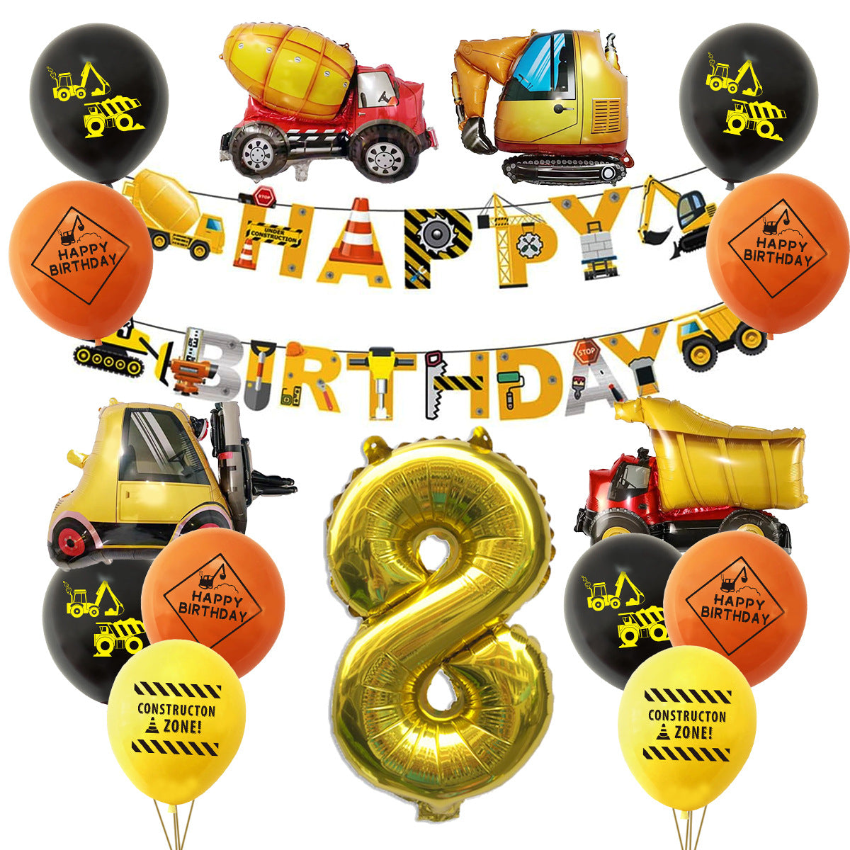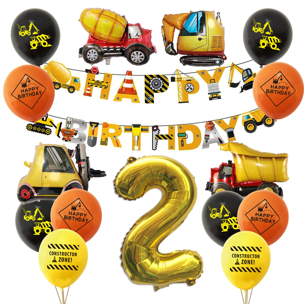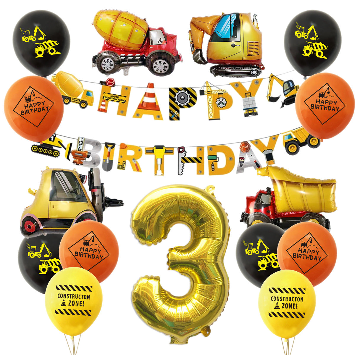 Mocsicka Construction Vehicle Excavator Foil Birthday Balloon Kit
