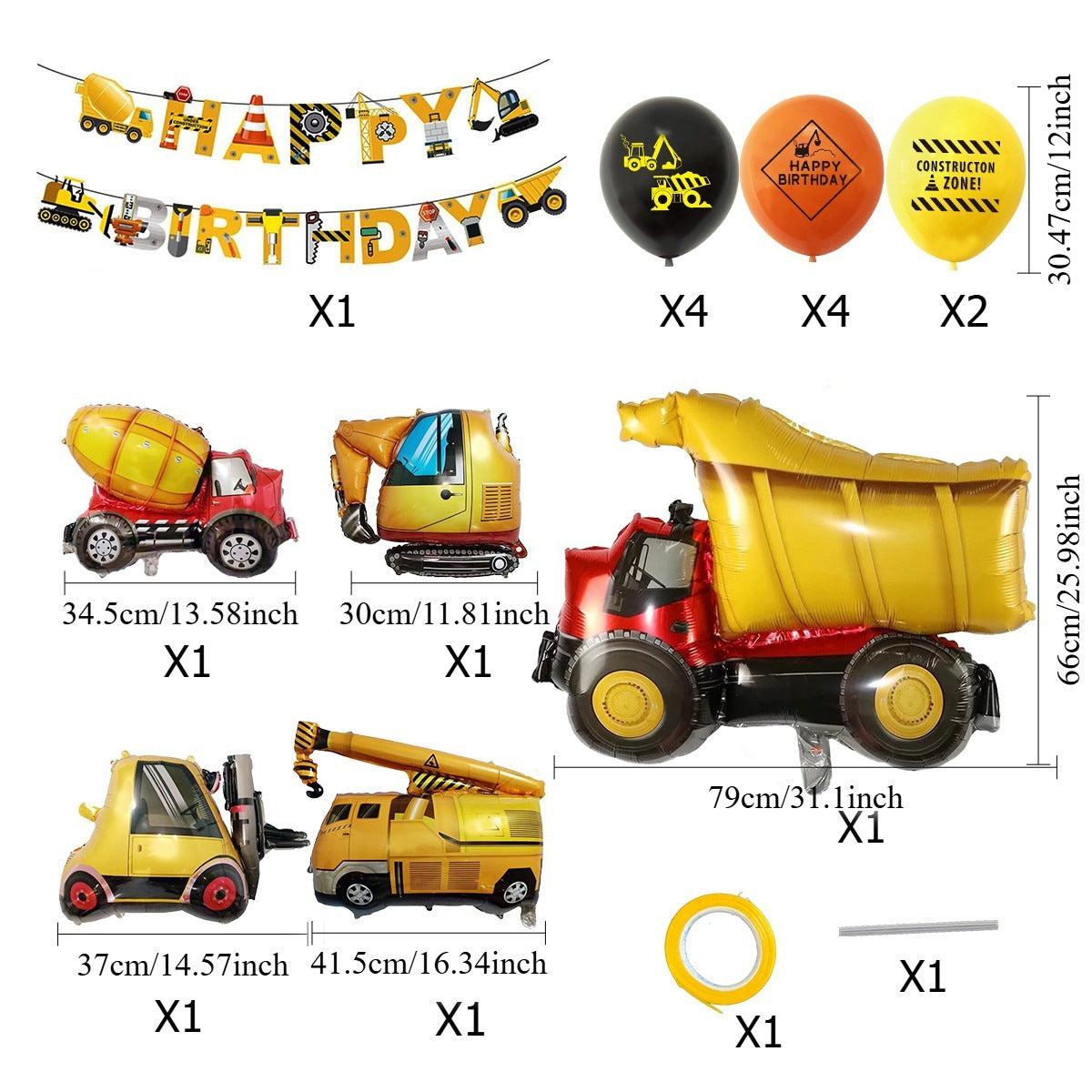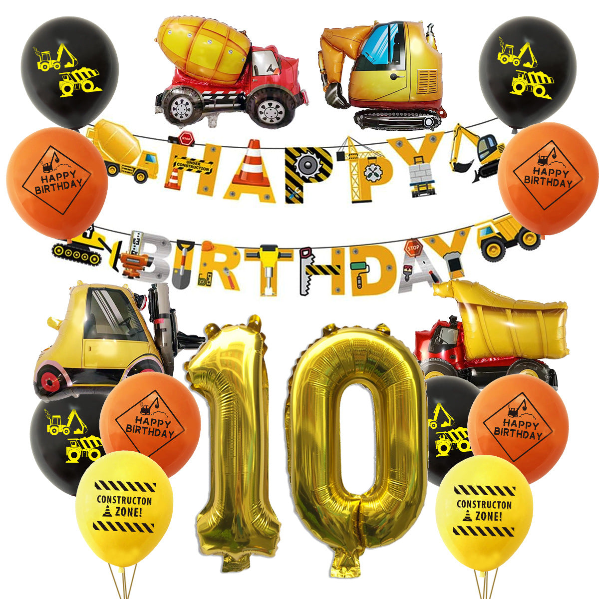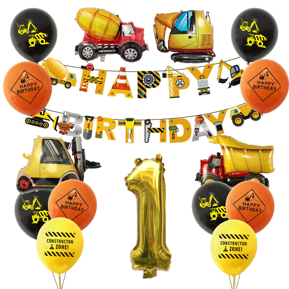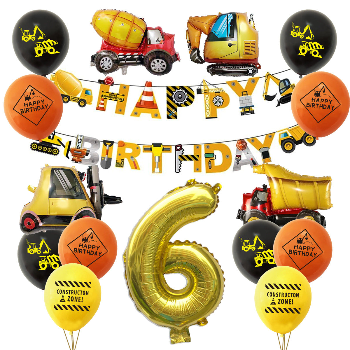 Mocsicka Construction Vehicle Excavator Foil Birthday Balloon Kit