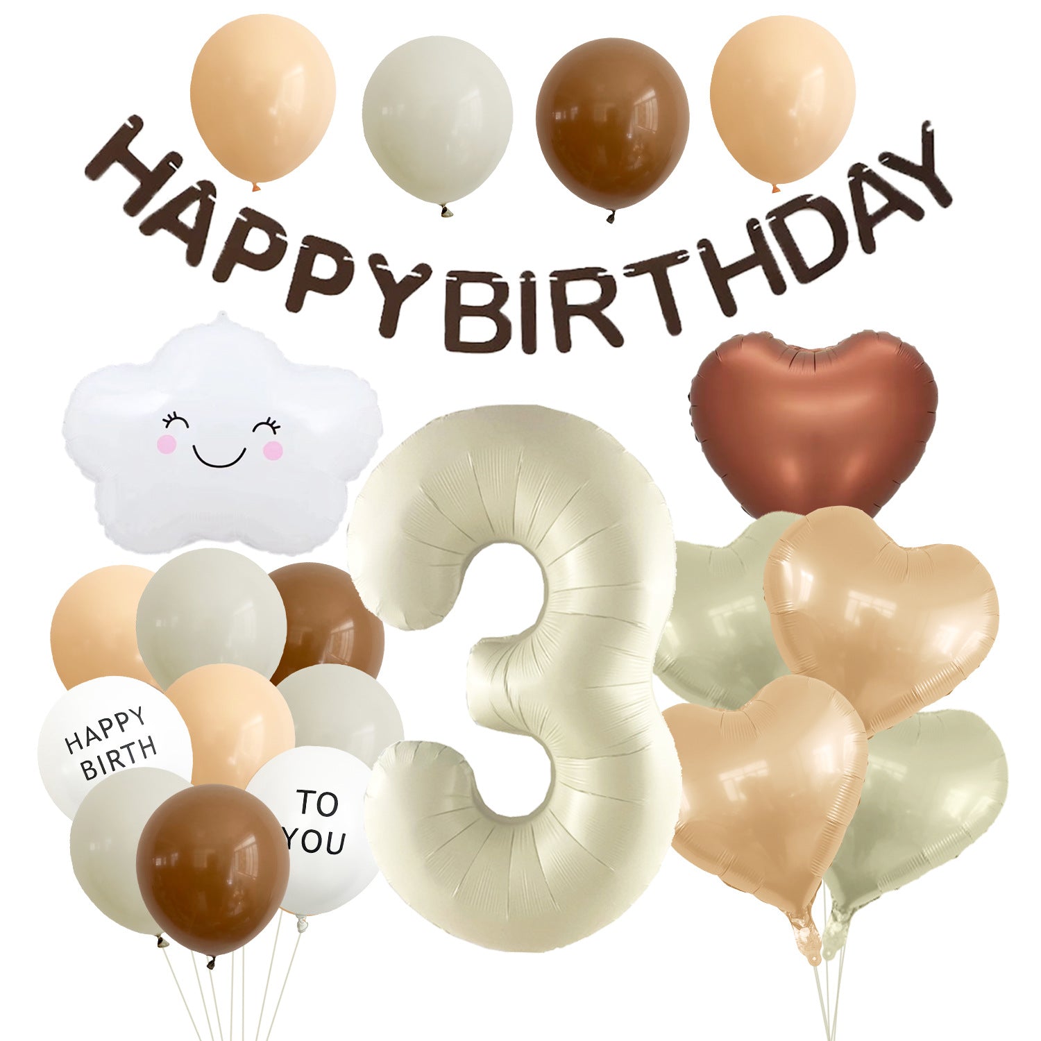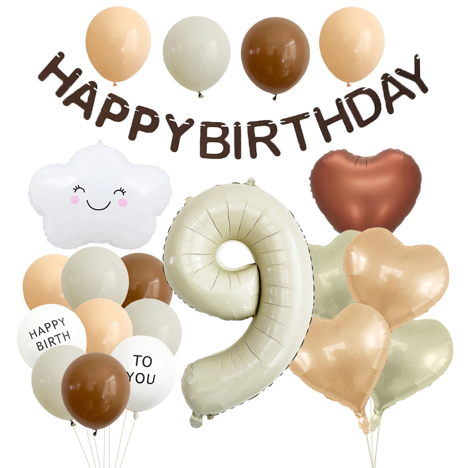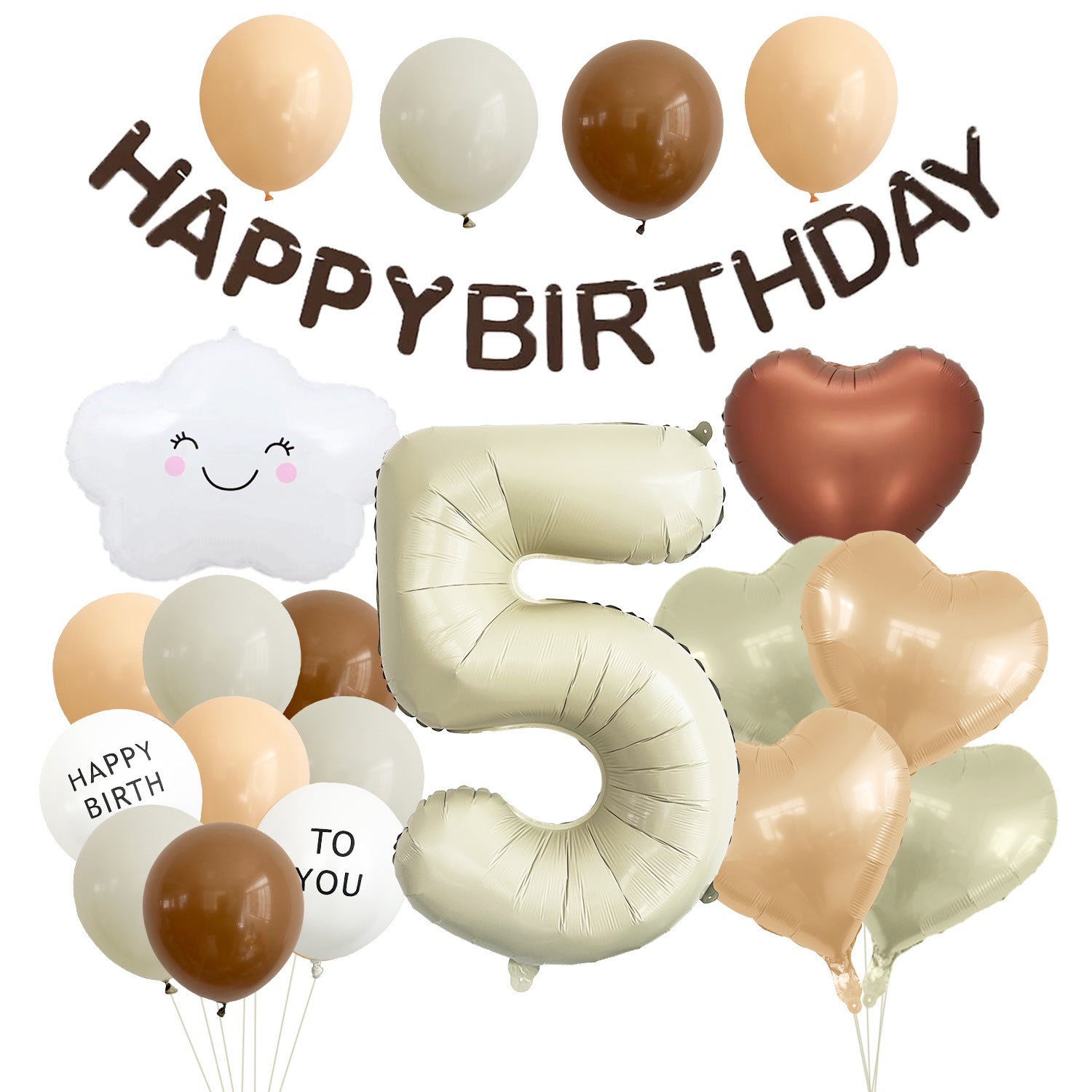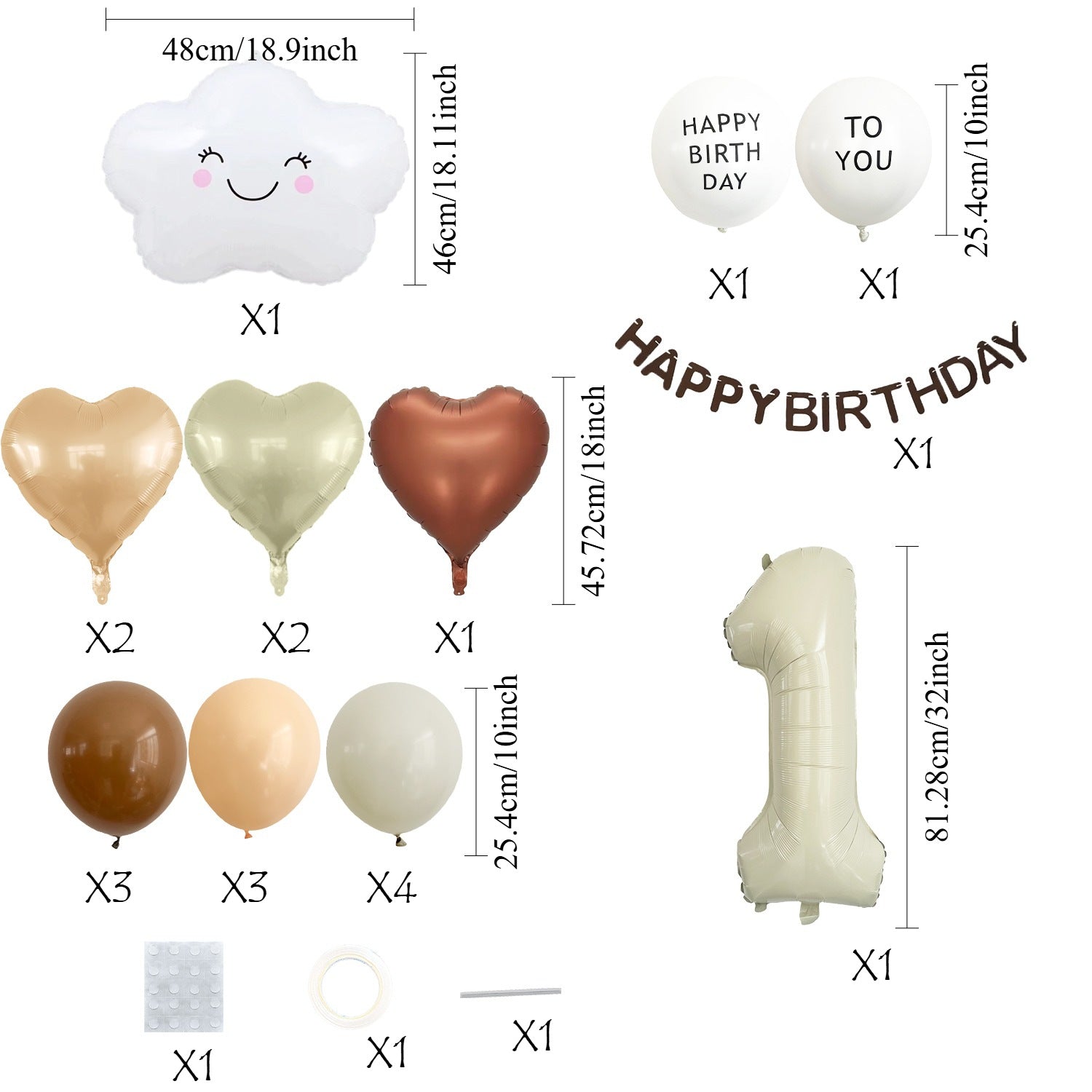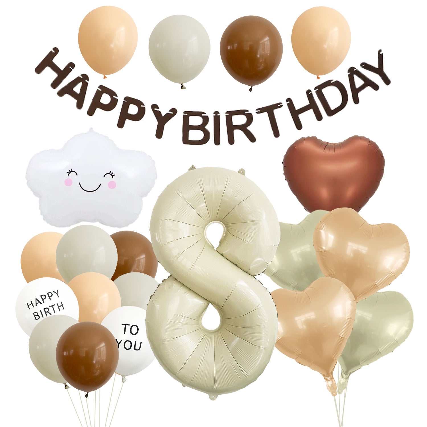 Mocsicka Soft Neutral Cloud Birthday Balloon Decor Kit