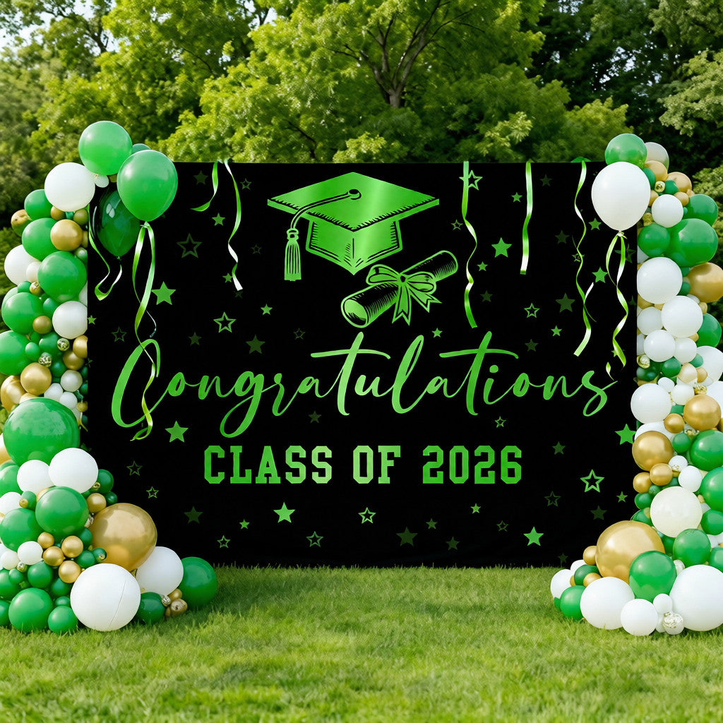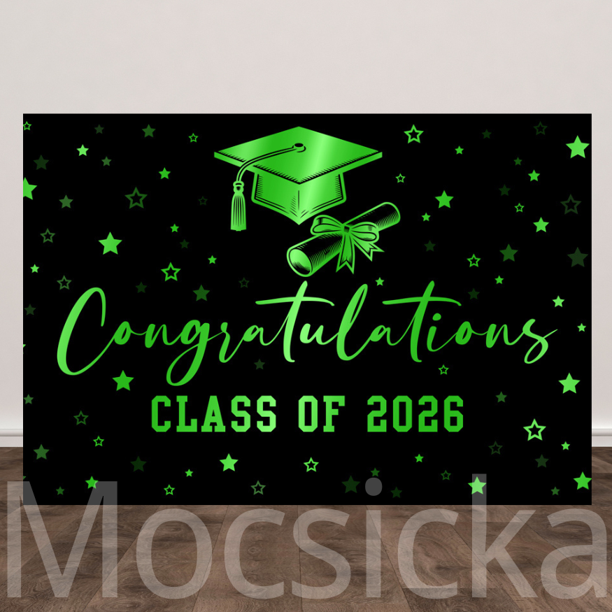 Mocsicka Grad Cap & Starry Black Green Graduation Backdrop For Class Of 2026