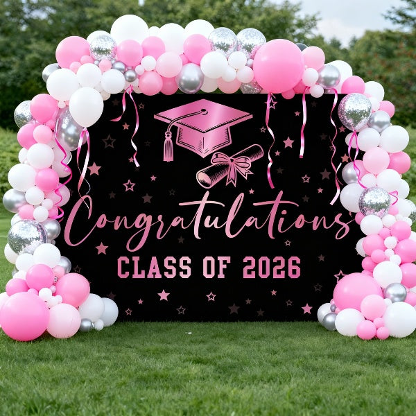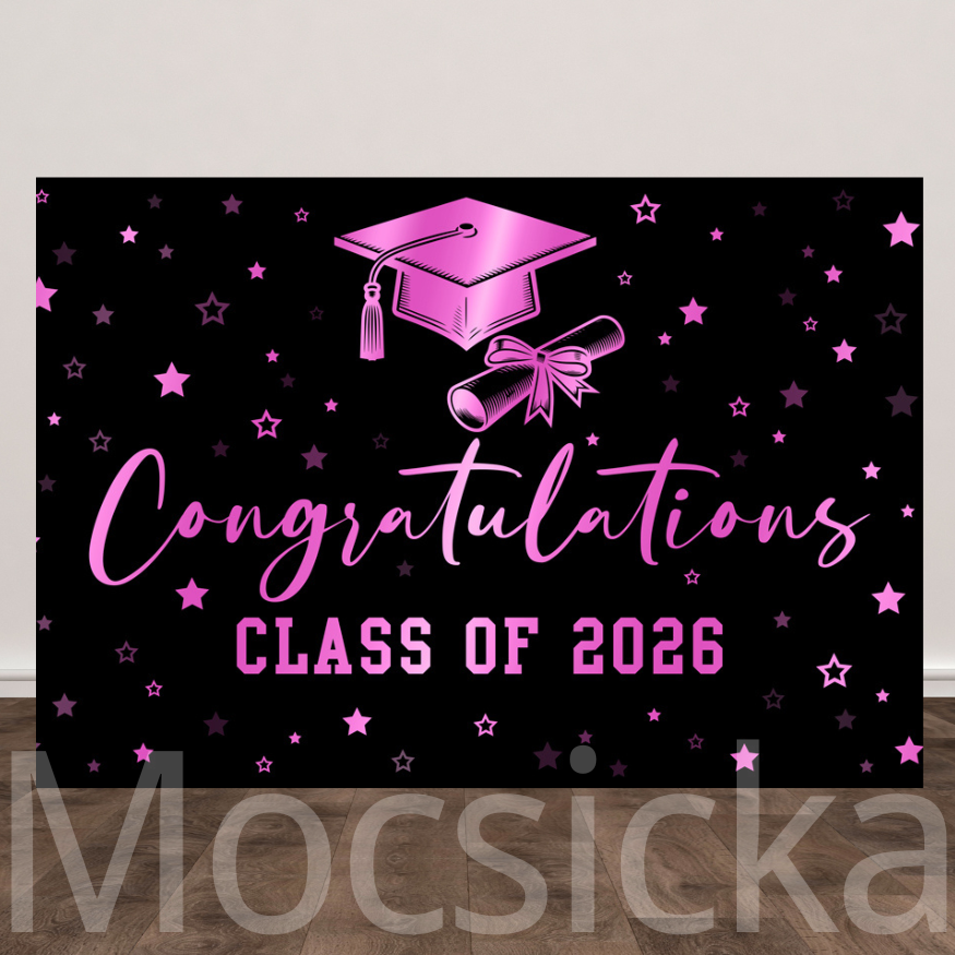 Mocsicka Grad Cap & Starry Black Pink Graduation Backdrop For Class Of 2026