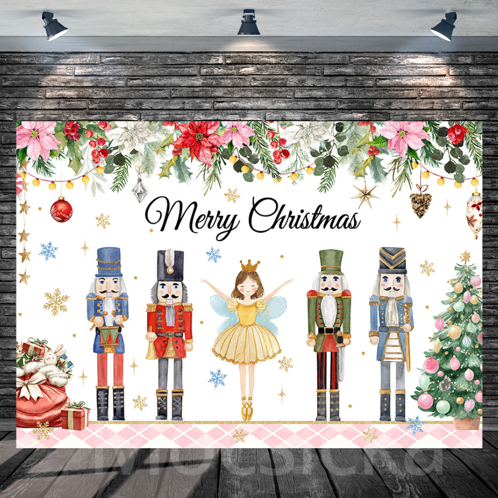 Mocsicka "Merry Christmas - Nutcracker & Ballerina" for Christmas Party Backdrop