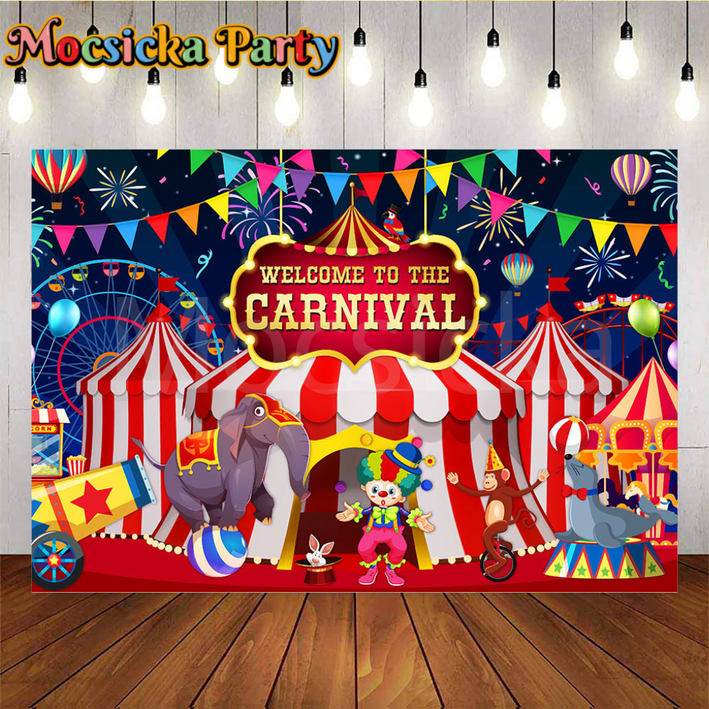 Mocsicka Welcome to the Carnival Backdrop for Birthday Party