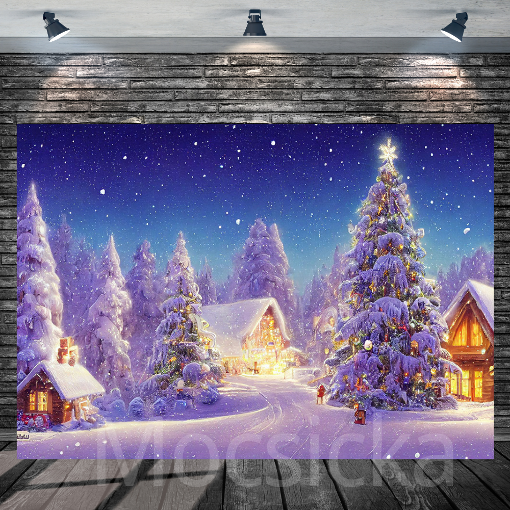 Mocsicka "Winter Wonderland - Snowy Christmas Village" for Christmas Party Backdrop
