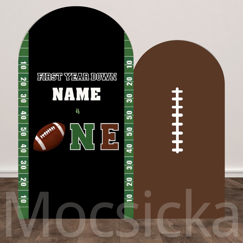 Mocsicka Football First Year Down Custom Name 2pcs Double-Printed Chiara Arch Cover Backdrop
