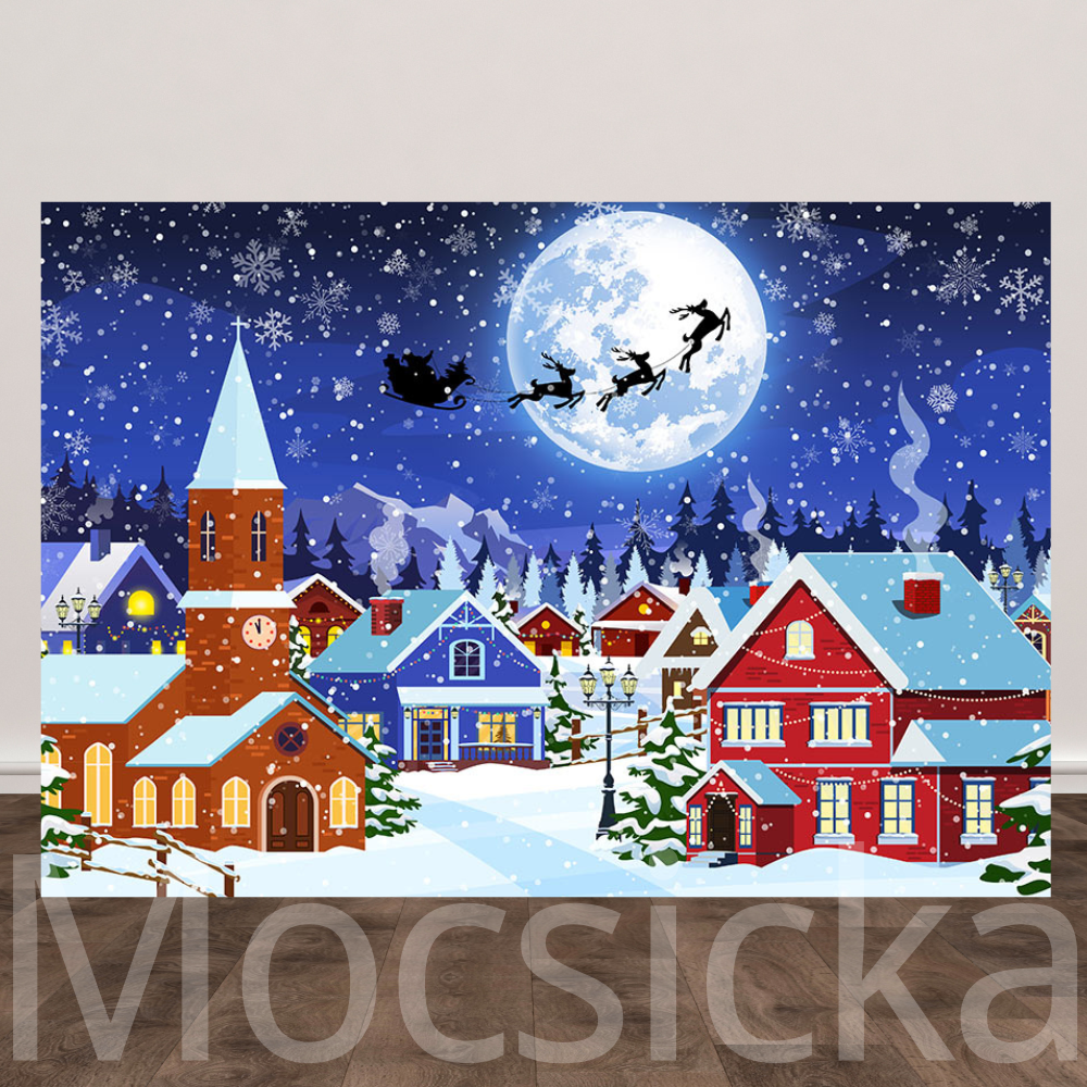 Mocsicka Moonlit Snowy Town Backdrop For Christmas