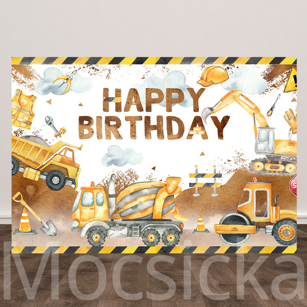 Mocsicka Yellow Construction Truck Backdrop For Birthday