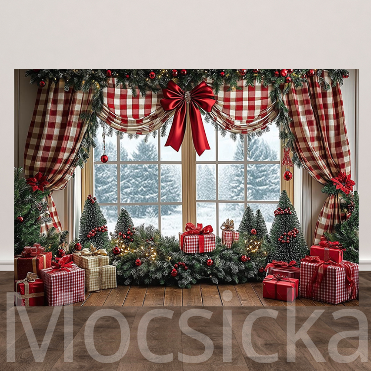 Mocsicka Red Plaid Christmas Backdrop for Xmas Decorations