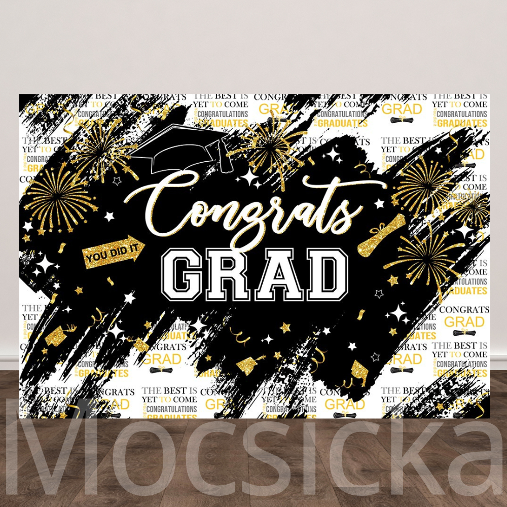 Mocsicka 'Black & Gold Grad Fiesta' Backdrop for Graduation
