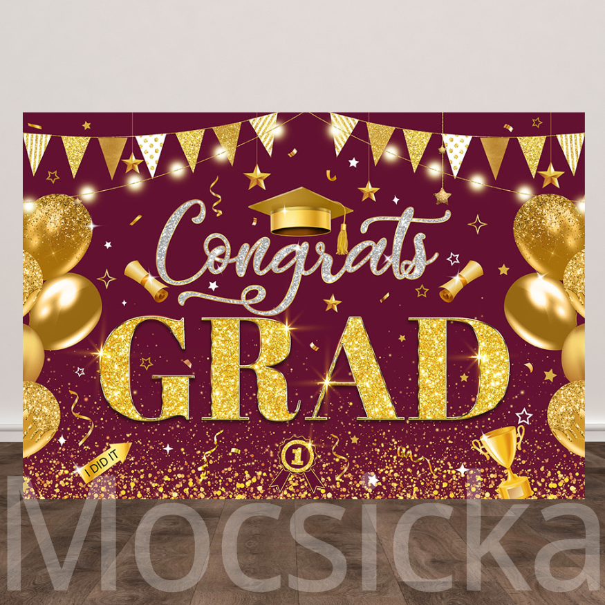 Mocsicka 'Burgundy & Gold Grad Fiesta' Backdrop for Graduation