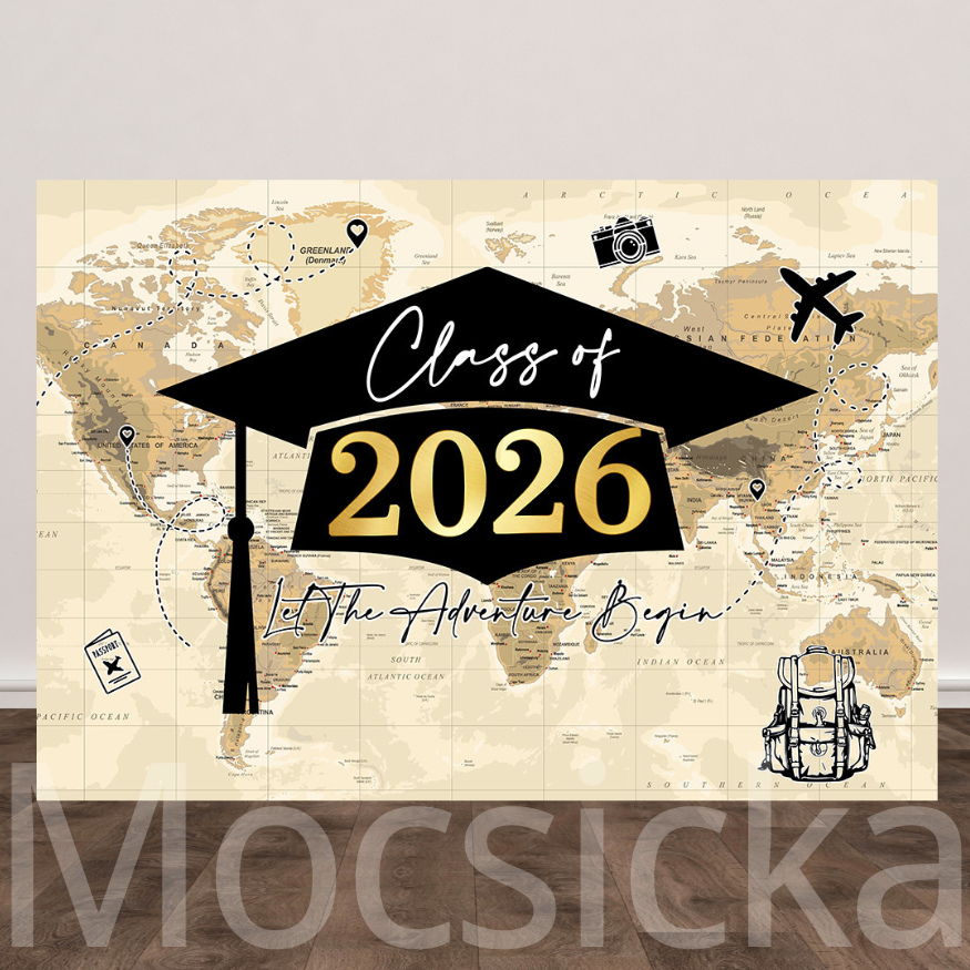 Mocsicka 'Map & Grad Journey Vibe' Backdrop for 2026 Graduation