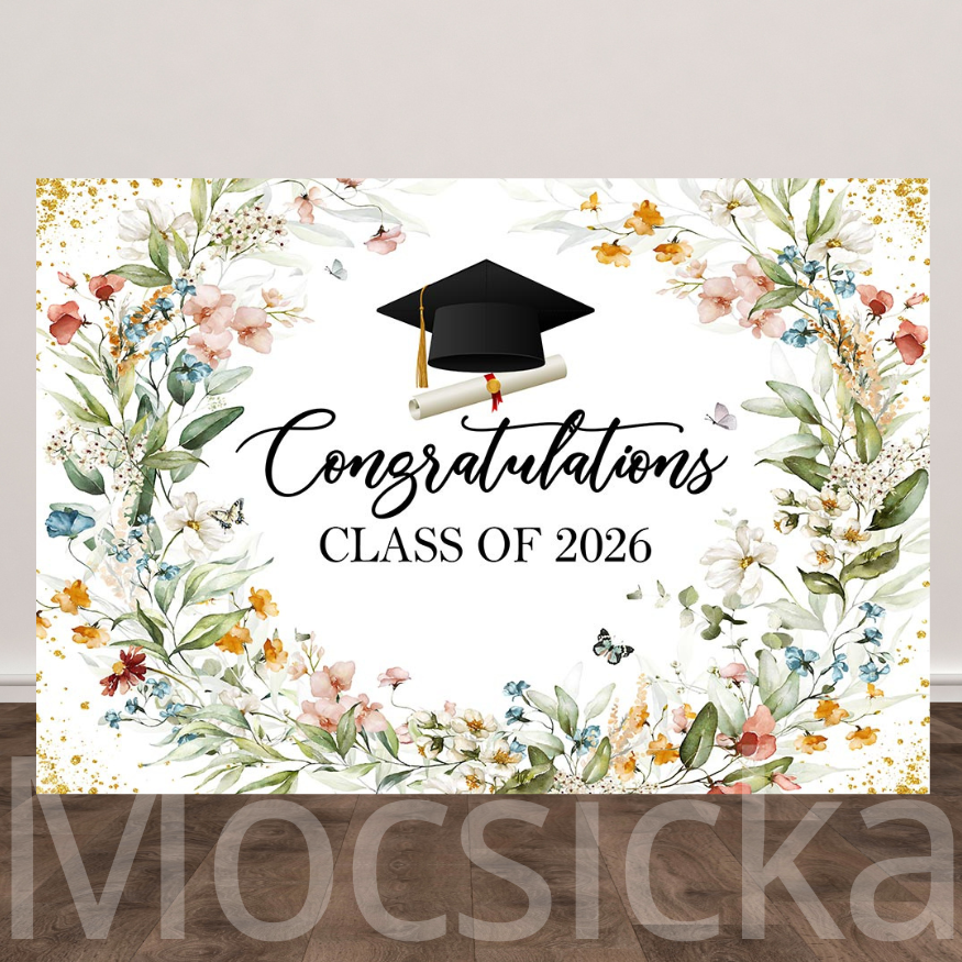 Mocsicka 'Pastel Floral Grad Vibe' Backdrop for 2026 Graduation