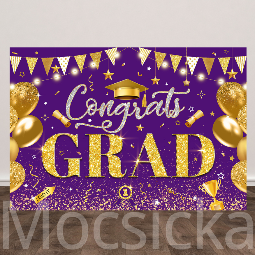 Mocsicka 'Royal Purple & Gold Grad Fiesta' Backdrop for Graduation