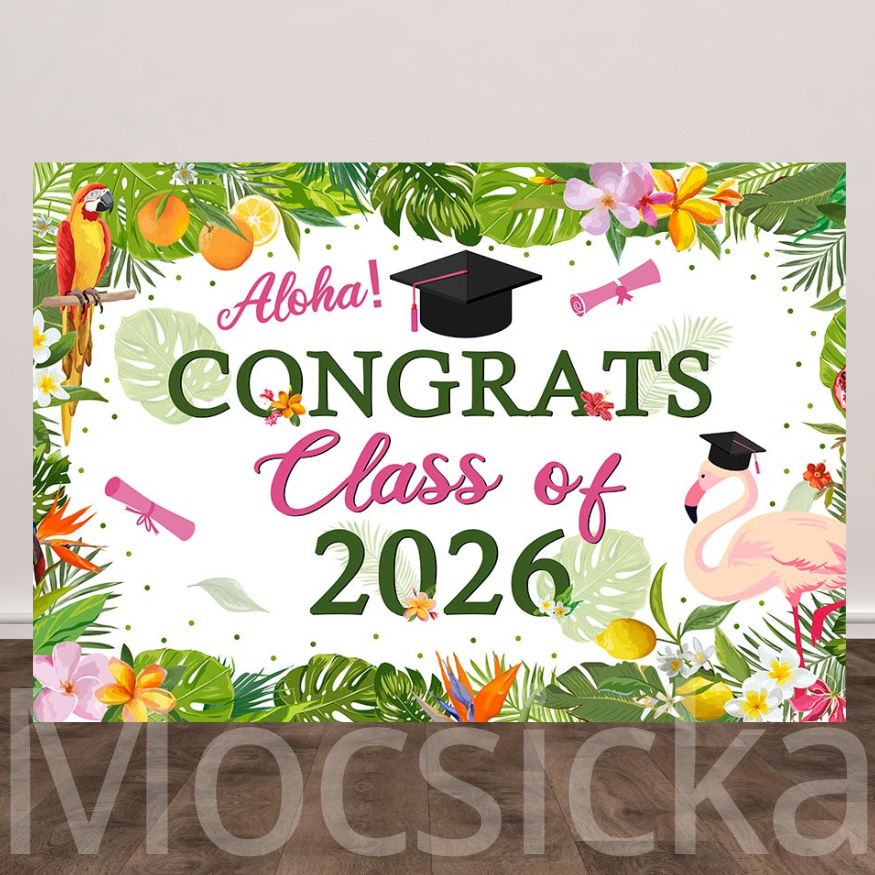 Mocsicka 'Tropical Green & Pink Grad Fiesta' Backdrop for Graduation