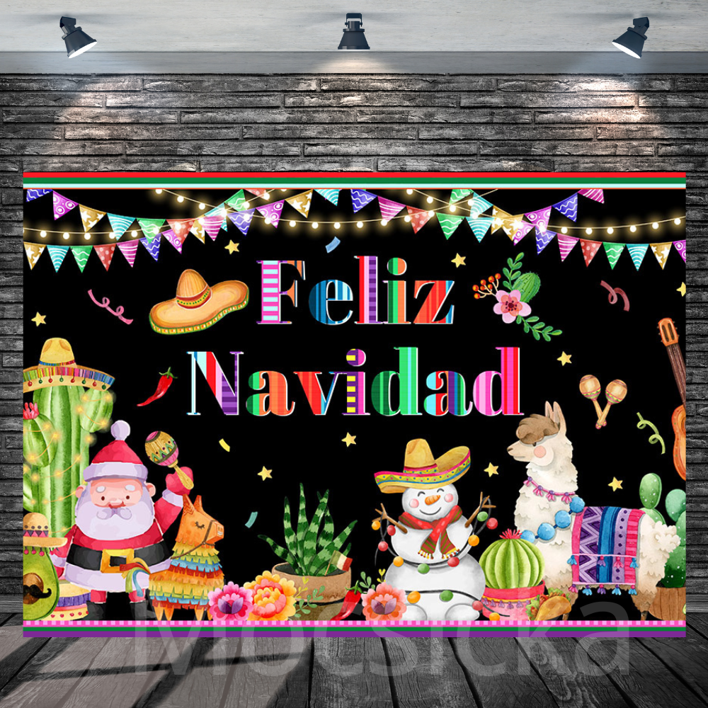 Mocsicka "Feliz Navidad - Mexican Style Fiesta" for Christmas Party Backdrop