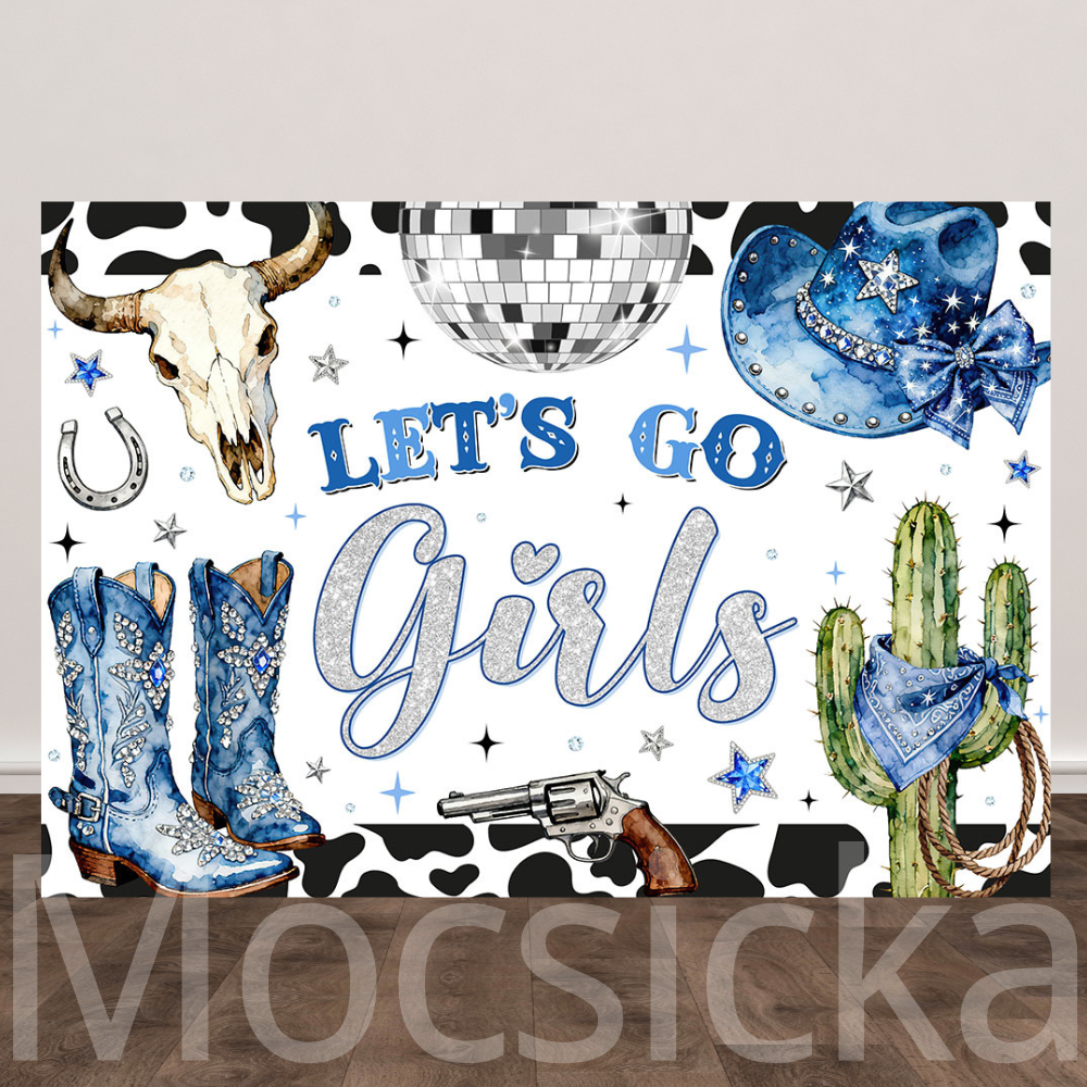 Mocsicka Let's Go Girls Disco Cowgirl Backdrop for Bachelorette Party