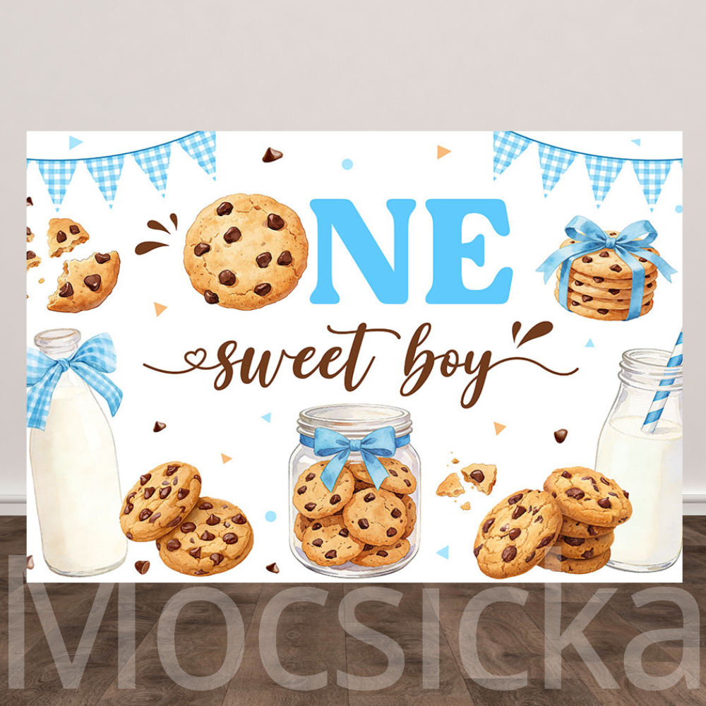Mocsicka One Sweet Boy Cookies & Milk First Birthday Backdrop