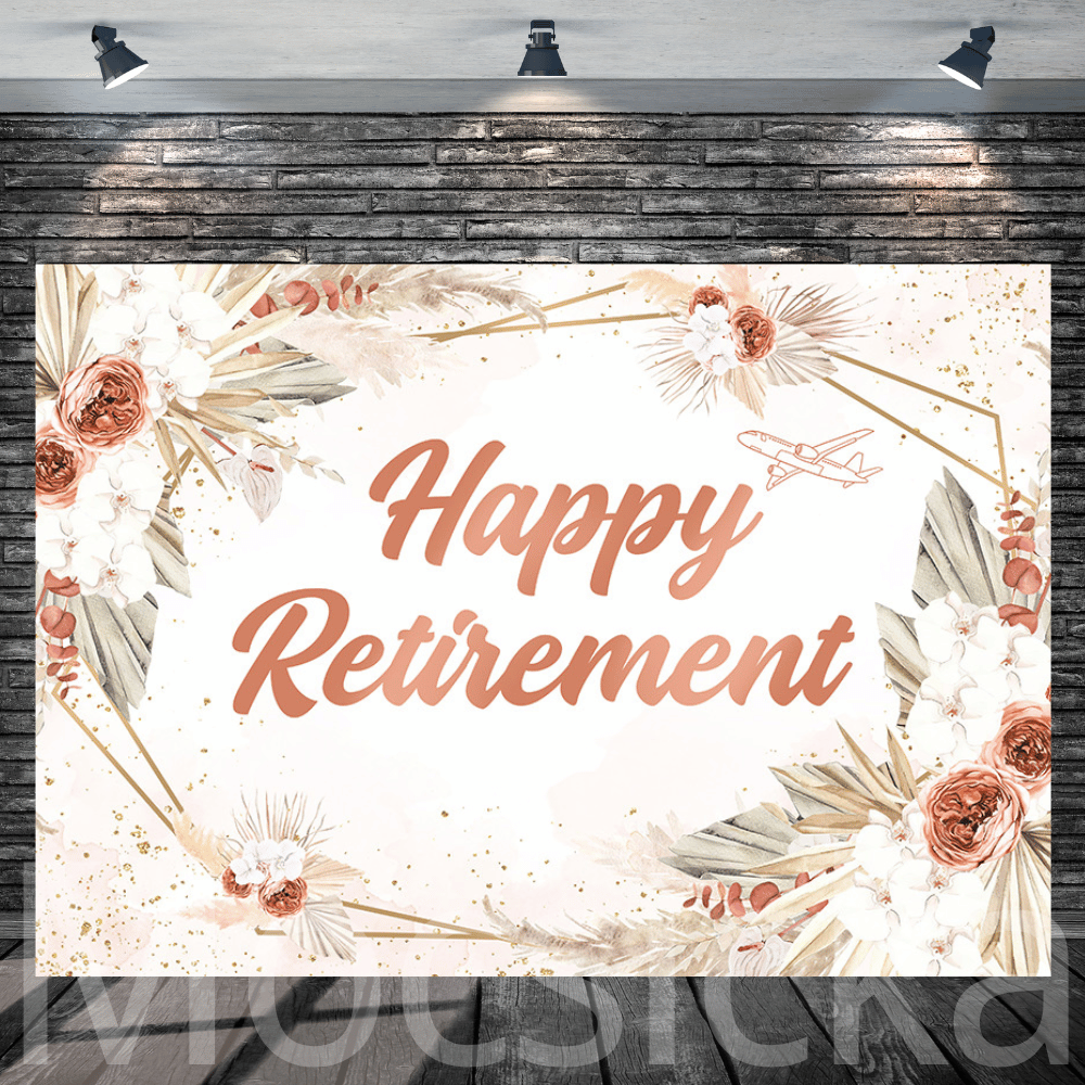 Mocsicka "Boho Floral Gold Frame" for Happy Retirement Backdrop