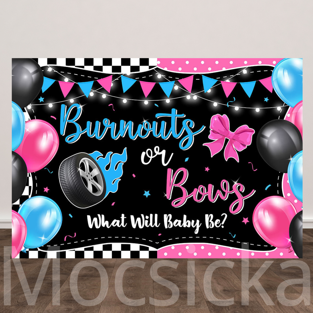 Mocsicka Burnouts or Bows Backdrop for Baby Shower