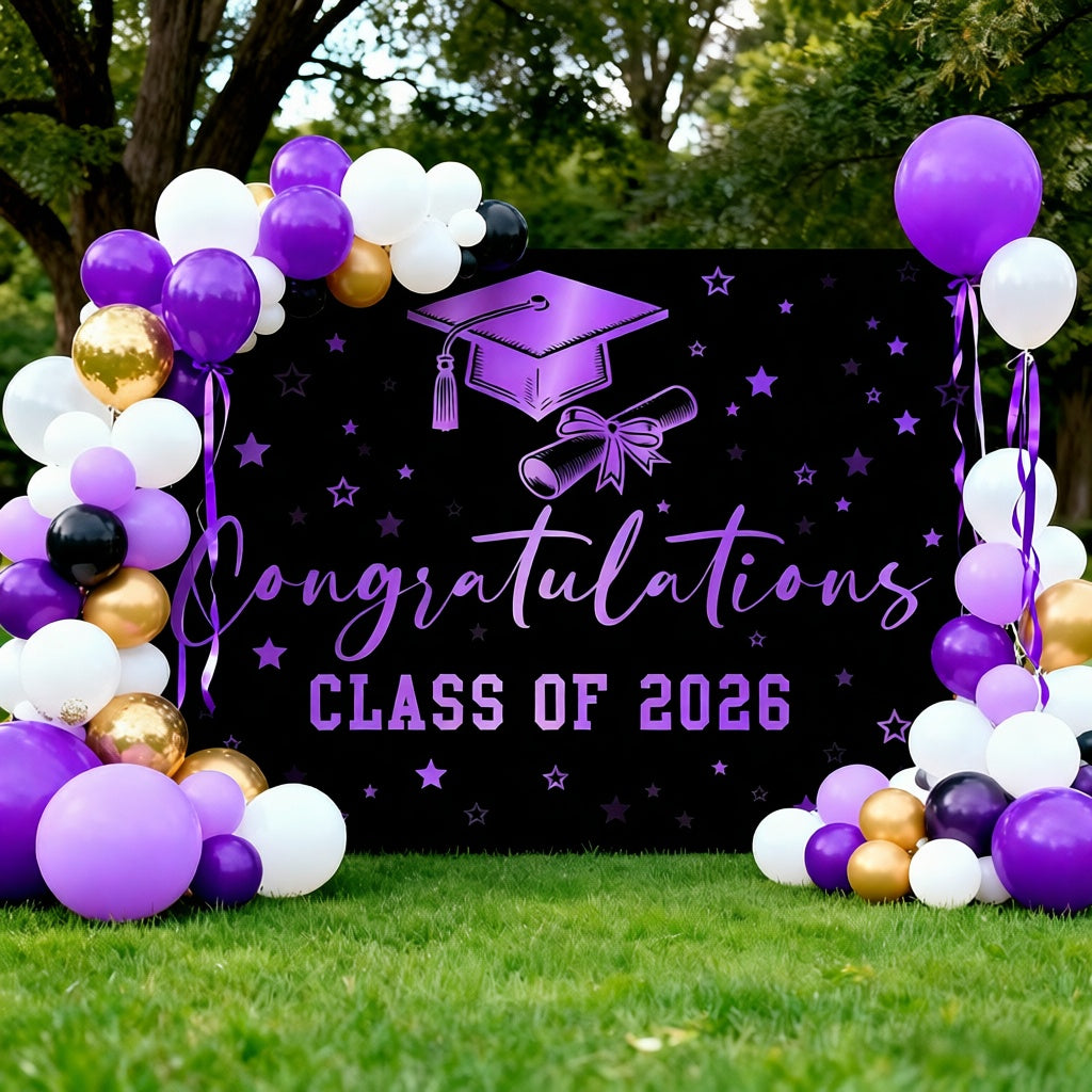 Mocsicka Grad Cap & Starry Black Purple Graduation Backdrop For Class Of 2026