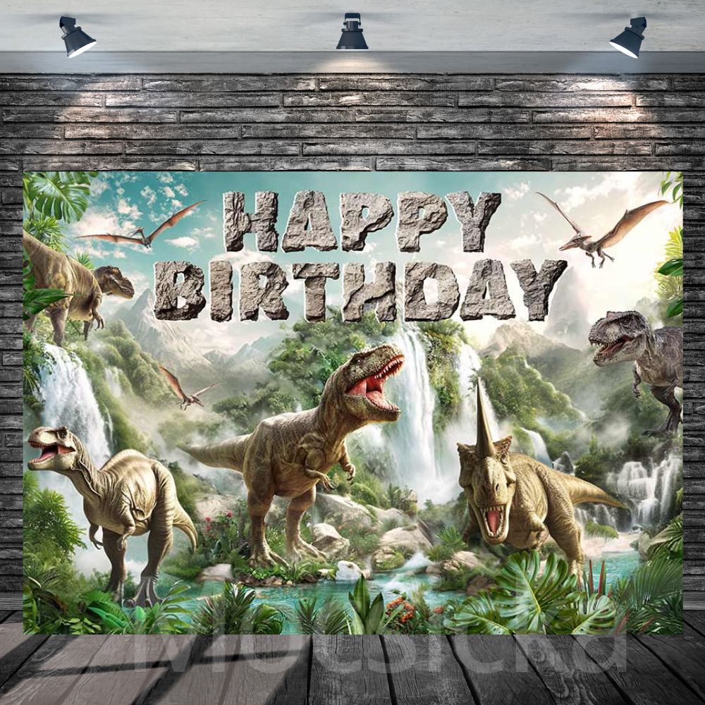 Mocsicka Happy Birthday with Cute Dinosaurs Backdrop for Birthday