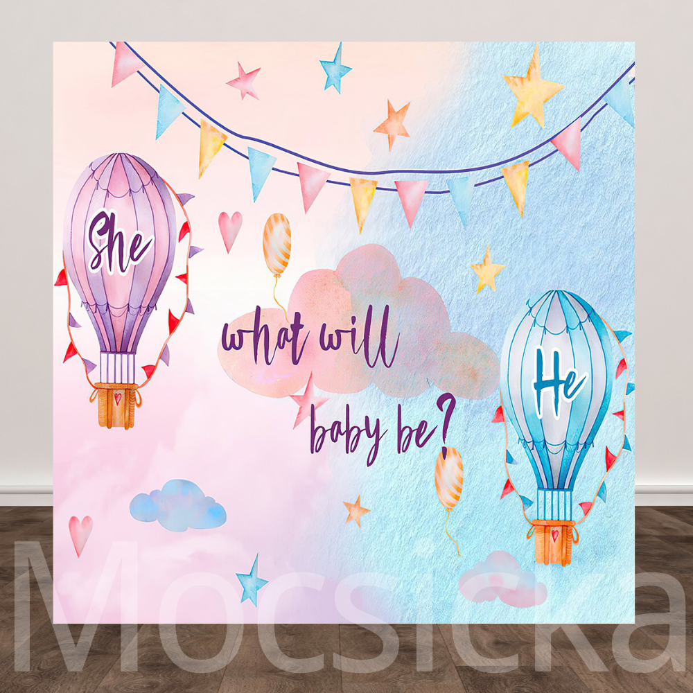 Mocsicka Hot Air Balloon Gender Reveal Backdrop For Baby Shower