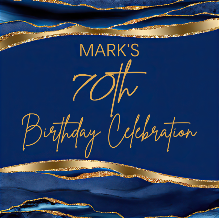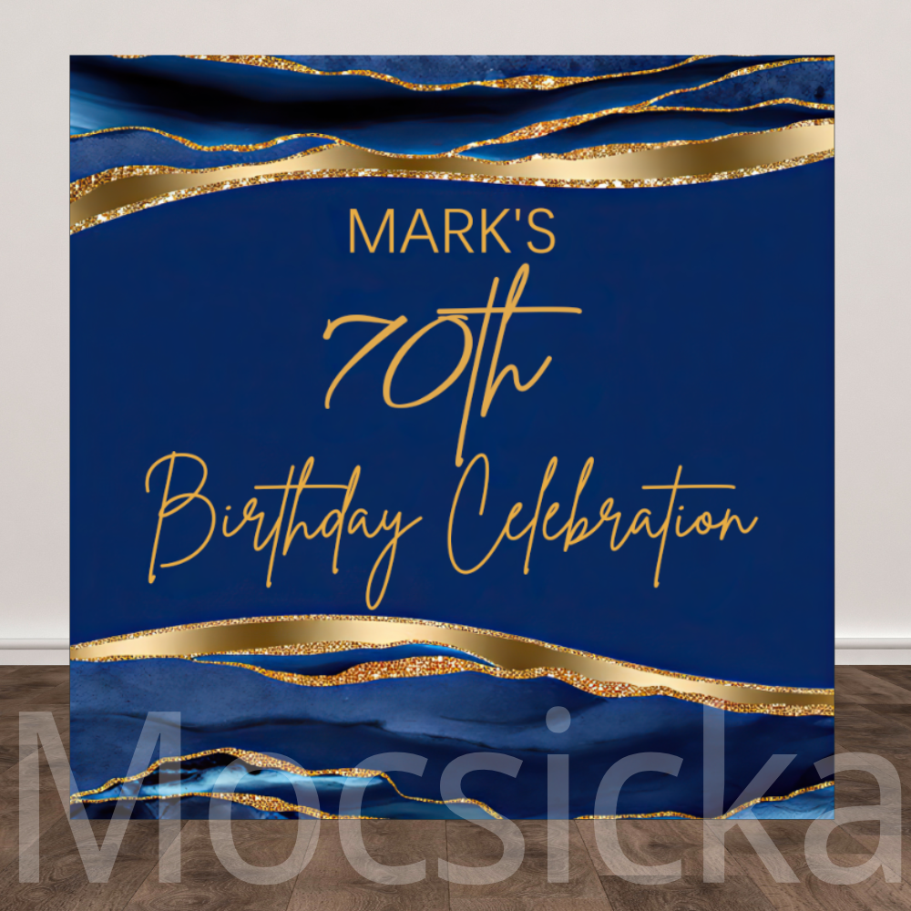 Mocsicka Navy Blue & Gold Agate 70th Birthday Backdrop for Celebration