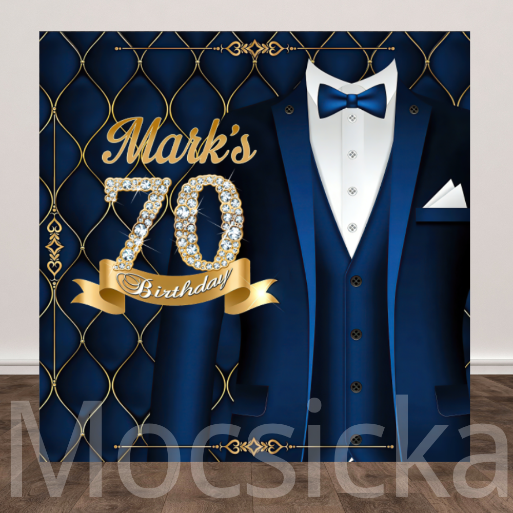 Mocsicka Navy Blue Tuxedo 70th Birthday Backdrop for Formal Party