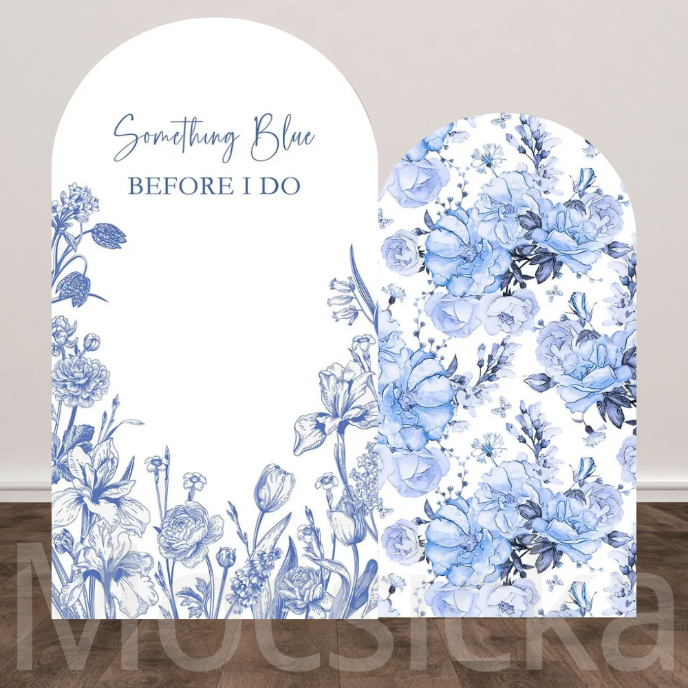 Mocsicka Something Blue Before I Do Custom Watercolor Floral Chiara Arch Cover Backdrop