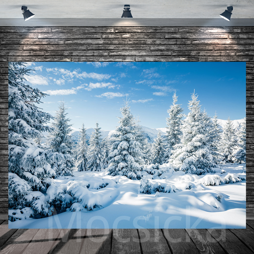 Mocsicka "Winter Wonder - Snowy Pine Forest" for Winter Party Backdrop